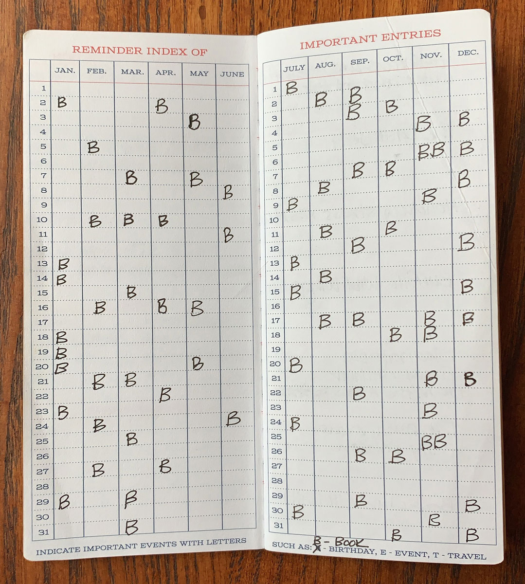 I keep track of books that I read on Goodreads, and also in the βReminder Index of Important Entriesβ page in my Standard Memorandum which I turned into a book log.